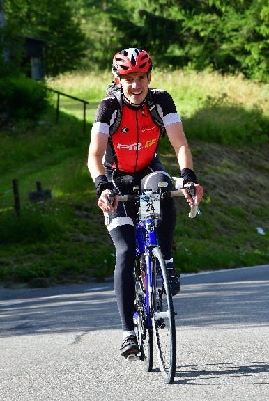 Unten im Aosta-Tal angekommen hatte ich dann die magische Radmarathon-Marke von 200 Kilometern geknackt. Die folgenden 20 Kilometer ging es dauerhaft leicht bergauf wieder zurück in Richtung Mont Blanc, nur diesmal die andere Bergseite. An der Verpflegungsstation in La Salle gab es, wie es sich für Italien gehört, Pasta mit Tomatensoße. Die Kohlenhydrate waren auch dringend nötig, ging es doch von dort kurz danach auf weiteres pittoreskes Bergsträßchen, den Col du Petit Saint Bernard. Der Kleine-Sankt-Bernhard-Pass (2188 m) war tatsächlich ein „Kleiner“! Aber eher ein kleiner Drecksack als ein kleiner Pass. Weitere 1400 Höhenmeter oder 25 Kilometer stets gen Himmel fahren stand auf dem Programm. Da hinter dem Pass ein Zeitlimit wartete und die Tageszeit schon etwas fortgeschritten war, hieß es hier nicht trödeln. Ich musste nicht hetzen, so nicht, aber ruhiges Fahren war auch nicht drin. Also rauf auf den Pass. Unterwegs merkte ich so nebenbei, dass sich meine Oberhaut auf Armen und Schenkel bereits in Wohlgefallen aufgelöst hatte. Hatte ich mich heute Morgen eigentlich eingecremt??? Ups! Die fünfminütige Sonnencremeorgie, um ein Durchgaren meiner Körperteile zu verhindern, zehrte nochmal an meiner knappen Zeit. Oben angekommen hieß es ganze 2 Minuten anhalten, Taschen füllen, körpereigene Behälter leeren und ab die Post über die französische Grenze ins Tal. Mein Gaul erreichte nach halsbrechericher Abfahrt auch tatsächlich um 19:30 Uhr und somit 30 Minuten vor dem Limit die Zeitschranke. Puh!!!!